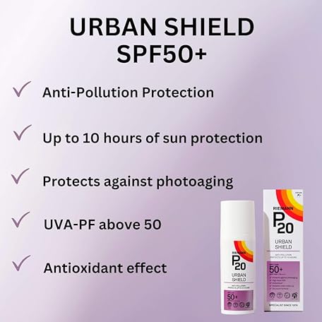 Sản phẩm P20 ® Urban Shield SPF 50+ | Protection against daily environmental aggressors UVA and UVB radiation, external dust, heavy metals and smoke | It protects against premature skin ageing | 50 g đang được bán với giá ưu đãi là $29.1684 tại nước Đức.
