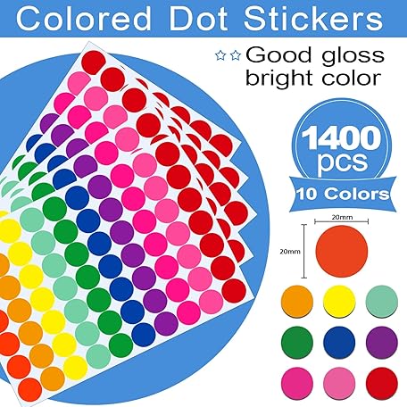 Sản phẩm Pack of 1400 20 mm Adhesive Dots Colourful 10 Colours Dot Stickers Round Colourful Adhesive Dots Coloured Labels Marking Dots Self-Adhesive for Calendar Office School đang được bán với giá ưu đãi là $7.6082 tại nước Đức.
