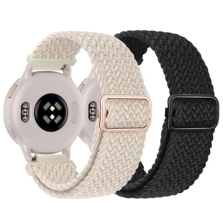 Pack of 2 Braided Wristbands Replacement for Garmin Vivoactive 5/Vivoactive 3/Venu 2 Plus/Venu Sq, 20 mm Soft Elastic Sport Nylon Replacement Strap for Garmin Forerunner 55/245/645 Men Women