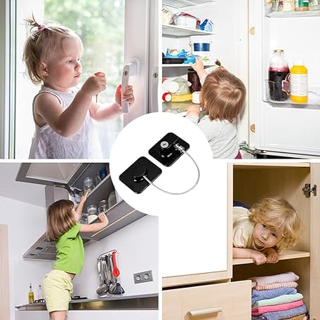 Thông tin sản phẩm Pack of 2 Fridge Lock, Fridge Lock No Drilling, Cabinet Lock with Keys, Child Safety Cabinet Lock for Freezer, Cupboards, Drawers, Windows (Black)