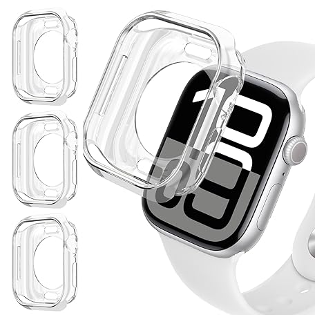 Pack of 3 Protective Case for Apple Watch SE/2 Protective Case 40 mm 44 mm 46 mm 45 mm 41 mm 42 mm iWatch Case, Soft TPU Case for Apple Watch 10 46 mm Protection iWatch Series 10 9 8 7 6 5 4 Case [No