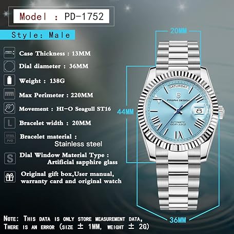 Sản phẩm Pagani Design DD36 Herrenuhren Luxus Automatikuhr Herren AR Saphirglas Mechanische Armbanduhr Herren 10Bar ST16 Uhrwerk đang được bán với giá ưu đãi là $171.3153 tại nước Đức.