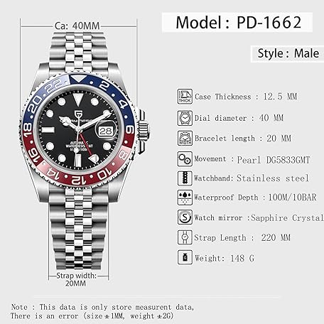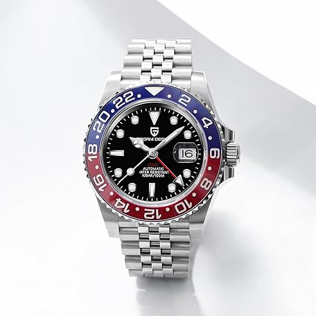Sản phẩm Pagani Design GMT Herren 40 mm Automatikuhr Saphirglas Edelstahl 100 Wasserbeständigkeit Analoguhr Mechanische Herrenuhren Geschenkuhr für Herren(Fünf Perlen Blau Rot) đang được bán với giá ưu đãi là $175.6099 tại nước Đức.