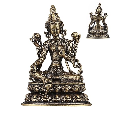 PAMINGONO Buddhistische Figur der Göttin aus Messing, religiöse Mini-Buddha-Statue für den Schreibtisch, für Retro-Heilung, Schlafzimmer, Meditation, Tischdekoration