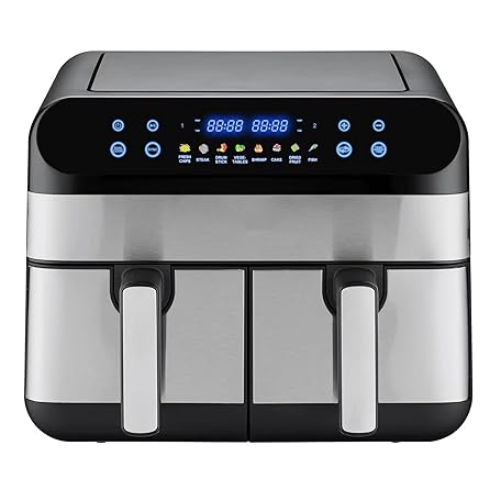 Panana Dual Zone Heißluftfritteuse mit Sichtfenster, Friteuse sans Huile avec 2 Tiroir, 9L XL Airfryer, 8 in 1 Programmes de Cuisson, Zeit- und Temperaturkontrolle, 2400W