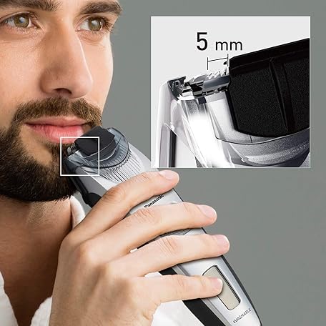 Thông tin sản phẩm Panasonic ER-SB60-S803 Beard Trimmer for Men, Portable Waterproof Hair Clipper, 20 Lengths, 2 Attachments, Precision Trimmer, Wireless & Wired Operation, Charging Station, Silver