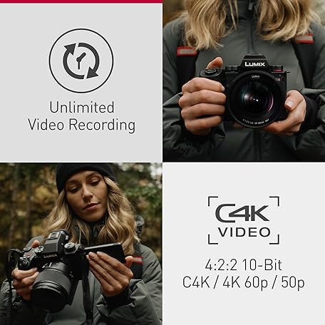 • Panasonic LUMIX S5II Full Frame Mirrorless Camera Kit with New Phase Hybrid AF, Active I.S, Unlimited 4:2:2 10-bit recording, 4K 60p and 6K 30p with LUMIX 50mm F1.8 L-Mount lens - DC-S5M2CE