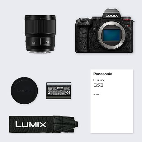 Panasonic LUMIX S5II Full Frame Mirrorless Camera Kit with New Phase Hybrid AF, Active I.S, Unlimited 4:2:2 10-bit recording, 4K 60p and 6K 30p with LUMIX 50mm F1.8 L-Mount lens - DC-S5M2CE