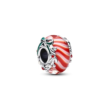 PANDORA Moments 794252C01 Candy Cane Murano Glass Charm in Sterling Silver with Murano Glass Compatible Moments