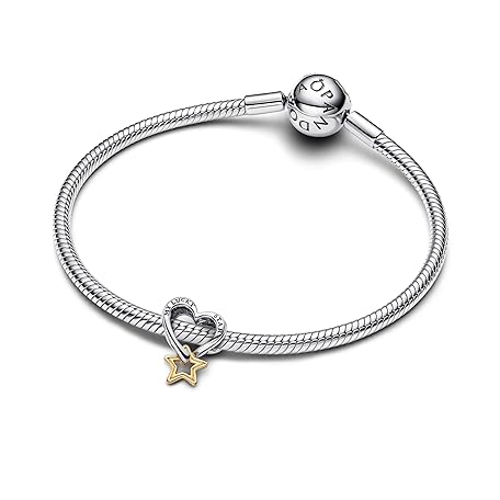 Thông tin sản phẩm PANDORA Moments Lucky Star & Heart Charm Made of Sterling Silver with Gold-Plated Metal Alloy, Compatible Moments Bracelets, 763513C00, Sterling Silver, No Gemstone