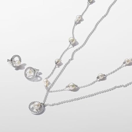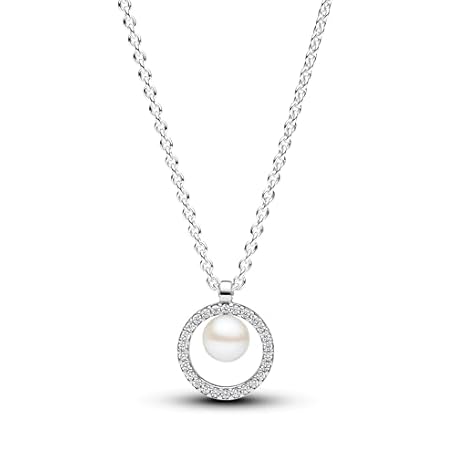 Thông tin sản phẩm PANDORA Timeless 393165C01-45 Treated Freshwater Cultured Pearl and Pave Necklace Made of Sterling Silver with Zirconia Stones Size 45 cm, 45 inches, Sterling Silver, Cubic Zirconia
