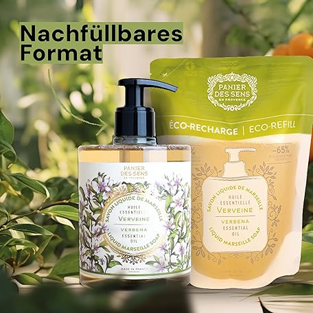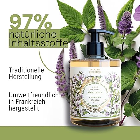 Sản phẩm Panier des Sens – Marseille Seife flüssig Verbene – 97% natürliche Inhaltsstoffe – Feuchtigkeit spendende Handseife flüssig mit Kokosnussöl - natürliche Seife aus Frankreich - 500ml đang được bán với giá ưu đãi là $21.4076 tại nước Đức.