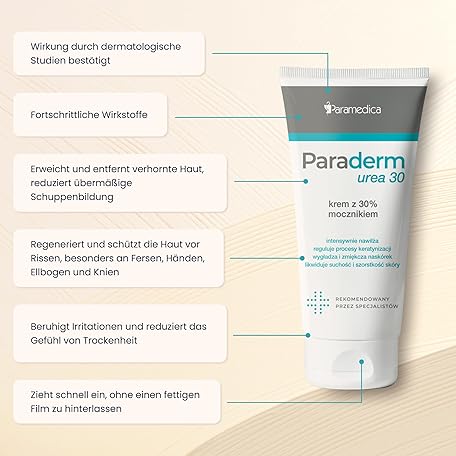 Thông tin sản phẩm Paraderm Urea Cream 30% - Intensive Care for Psoriasis, Eczema & Keratosis Pilaris - Urea Body, Body Lotion & Hand Cream, for Feet, Elbows, Knees and Heels Against Dry, Cracked Skin - 100 g