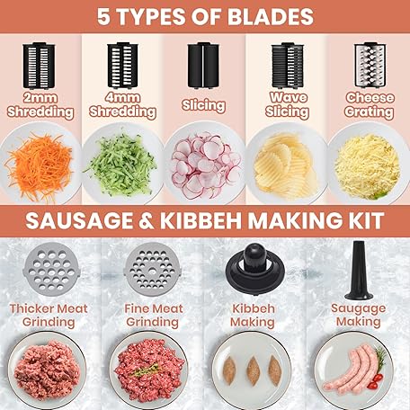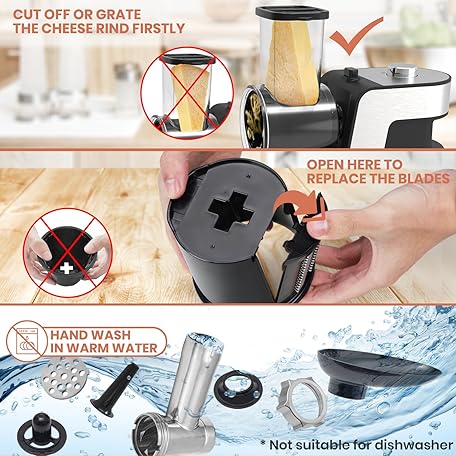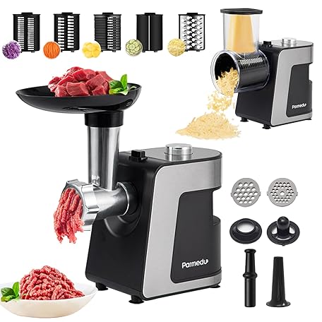 Sản phẩm Parmedu Electric Meat Grinder & Vegetable Slicer & Cheese Grater Automatic Multi Chopper Kitchen Grater Mandolin Parmesan Grater Salad Machine Sausage Machine Sausage Filler Kibbeh Maker with 12 đang được bán với giá ưu đãi là $63.9067 tại nước Đức.