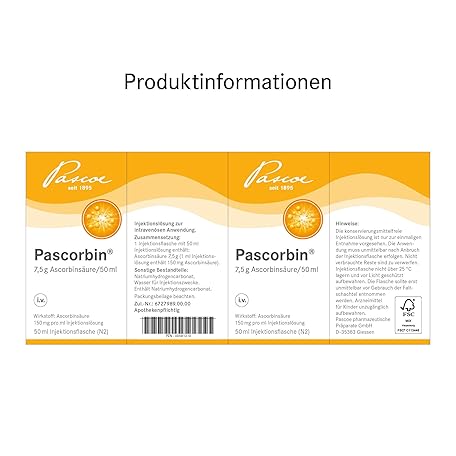 Sản phẩm Pasc ORBIN 7.5g Ascorbic Acid/ML Injectable Solution – Solution 50 ml đang được bán với giá ưu đãi là $20.6446 tại nước Đức.