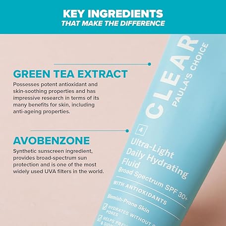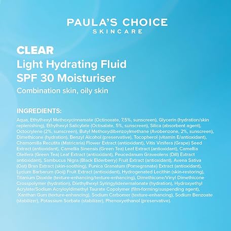 Thông tin sản phẩm Paula's Choice Clear daily hydrating fluid SPF 30, light moisturising cream for blemished skin with blackheads & acne, with vitamin E & antioxidants, combination skin to oily skin, 60 ml