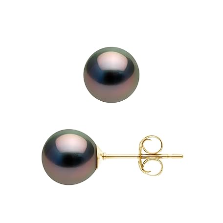 PEARLS & COLORS Prestige Earrings Genuine Tahitian Cultured Pearls Round 8-8.5 mm - A+ Quality - Available in Yellow Gold and White Gold - Women's Jewellery