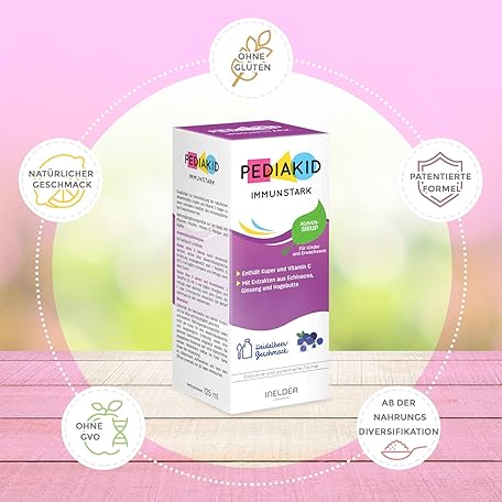 Sản phẩm PEDIAKID - Immunostrong - Dietary supplement based on extracts of Echinacea - Helps support the body's natural defenses - 125 ml đang được bán với giá ưu đãi là $20.2304 tại nước Đức.