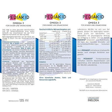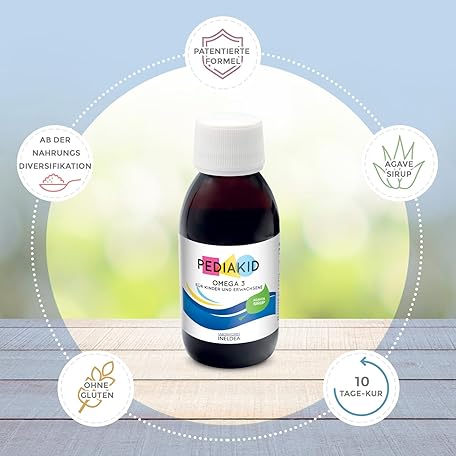 Sản phẩm PEDIAKID - Omega 3 - Natural Dietary Supplement - Exclusive Formula with Agave Syrup - Rich in DHA - Promotes Good Brain Function - Lemon Cola Flavour - 125 ml Bottle đang được bán với giá ưu đãi là $21.1024 tại nước Đức.