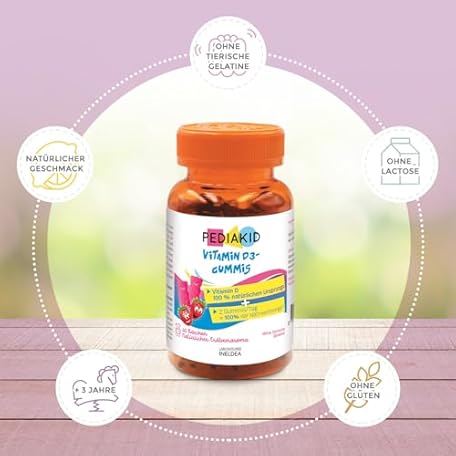Sản phẩm PEDIAKID - Vitamin D3 Gums - Vitamin D3 100% Natural Origin - Strengthening of Natural Defences - From 3 Years - Covers 100% of the Recommended Daily Dose - 60 Gums đang được bán với giá ưu đãi là $11.2052 tại nước Đức.