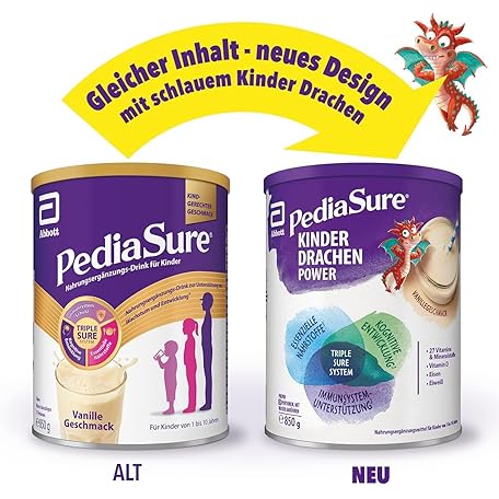 • Pediasure Kinder Drachen Power Vanille 850g| leckerer Nahrungsergänzungsshake für Kinder ab 1 Jahr|mit 27 Vitaminen & Mineralien, Protein und triplesure Komplex|Verpackung kann variieren