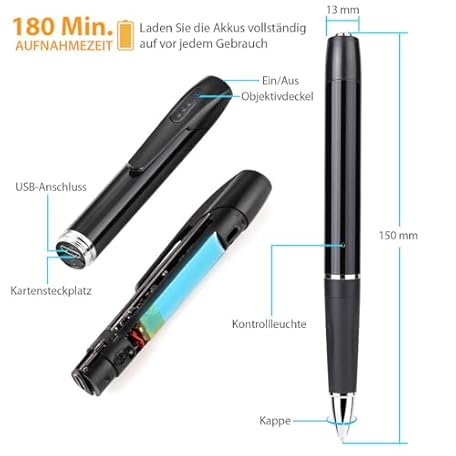 Sản phẩm Pen Camera: Full HD Ballpoint Pen Video Camera, Sound Recording, One Button Operation (Ballpoint Pen Camera, Camera Pen, Spy and Mini Camera) đang được bán với giá ưu đãi là $54.2711 tại nước Đức.