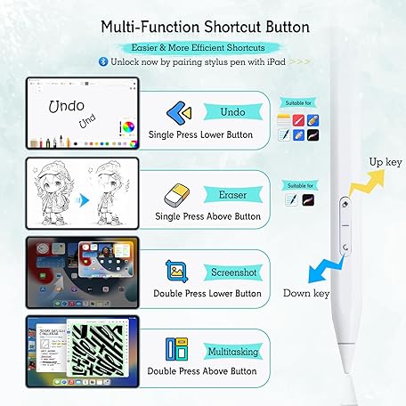 Thông tin sản phẩm Pen for iPad (2018-2025) - Compatible with iPad Pro 12.9" (M4/M3/M2), Air 7/6/5/4/3, 11th-6th Gen and Mini 5/6/7 - With 2x Fast Charge, Tilt Sensitive Control and Palm Rejection Technology