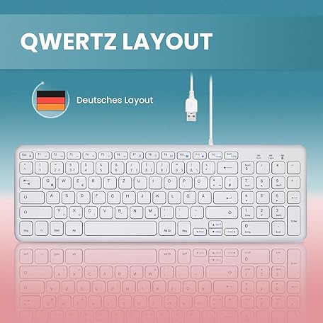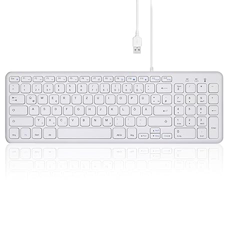 Thông tin sản phẩm Perixx PERIBOARD-213W DE Wired Compact USB Keyboard with Quiet Scissor Structure Keys for Computer, Numeric Keypad, Laptop and Tablet, White, QWERTZ
