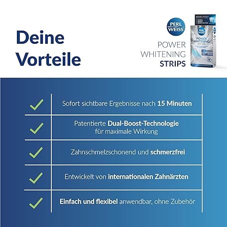 Sản phẩm Perlweiss Power Whitening Strips zur Zahnaufhellung - zahnschmelzschonendes Bleaching für weisse Zähne - Teeth Whitening Kit für Zuhause - Zahnverfärbungen entfernen & aufhellen, 10 Strips đang được bán với giá ưu đãi là $12.5895 tại nước Đức.