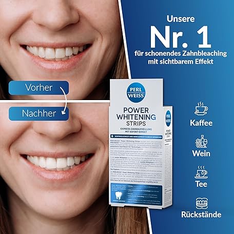 Thông tin sản phẩm Perlweiss Power Whitening Strips zur Zahnaufhellung - zahnschmelzschonendes Bleaching für weisse Zähne - Teeth Whitening Kit für Zuhause - Zahnverfärbungen entfernen & aufhellen, 10 Strips