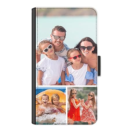 Personalisierte Handyhülle für Samsung Galaxy A-Modelle, A35, A34, A15, A51, A52, A52S, A53, A54, A55, Telefon, individuelle Fotocollage, Bild auf Lederseite, Flip-Brieftasche, Handyhülle, drei Bilder