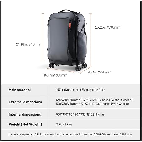 Thông tin sản phẩm PGYTECH 2 in 1 Camera Backpack with Wheels, DSLR/SLR/Mirrorless/Tripod Photo Backpack for Travel Photographers, Backpack Trolley with Rain Cover, Compatible with 17 Inch Laptop, Canon, Nikon, Sony,