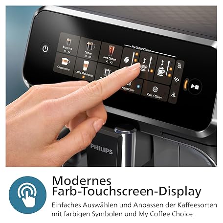 Thương hiệu PHILIPS là cái tên nổi tiếng được rất nhiều khách hàng trên thế giới chọn lựa. Với kiểu dáng đẹp mắt, sang trọng, sản phẩm Philips 3300 Series Kaffeevollautomat - 6 Getränke, Modernes Farb-Touchscreen-Display, LatteGo-Milchsystem, SilentBrew, 100% Keramikmahlwerk, AquaClean Filter. Schwarzchrom (EP3347/90) là sự lựa chọn hoàn hảo nếu bạn đang tìm mua một món cho riêng mình.