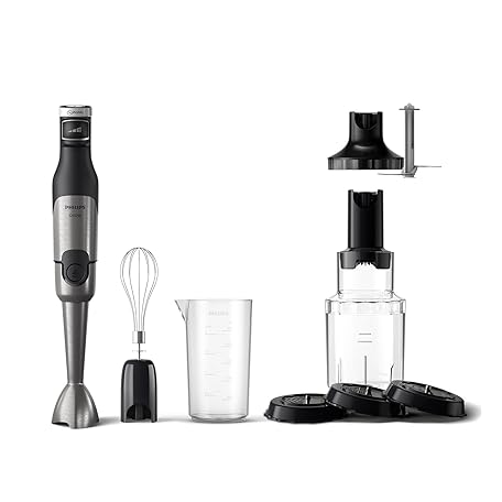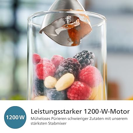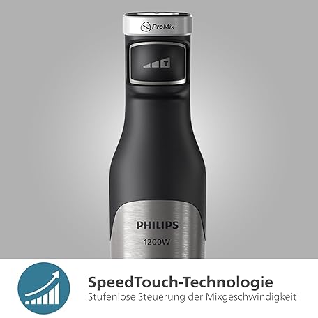 Thông tin sản phẩm Philips 5000 Serie Stabmixer, Leistungsstarker 1200-Watt-Motor, ProMix- + SpeedTouch-Technologie, One-Touch-Knopf, Spiralisierer-Aufsatz, Schwarz (HR2684/00)