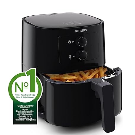 Sản phẩm Philips Essential Air Fryer - 4.1 L, 1400 W, Rapid Air Technology, NutriU Recipe App, 60 minutes timer, Adjustable temperature, Deep Fryer Without Oil, Black (HD9200/90) đang được bán với giá ưu đãi là $85.783 tại nước Đức.