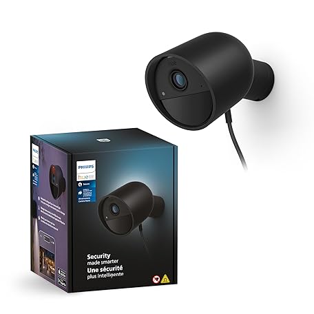 Philips Hue Secure Wired Smart Home Security Camera, Full HD Video, Indoor or Outdoor, Smart Home Security and Light Control with Just One App, Black