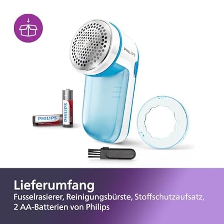 Thông tin sản phẩm Philips Lint Shaver, Lint Remover for Clothes, Suitable for All Textiles, 2 Height Settings, Battery Operated (2 x AA Batteries Included), Blue (GC026/00)
