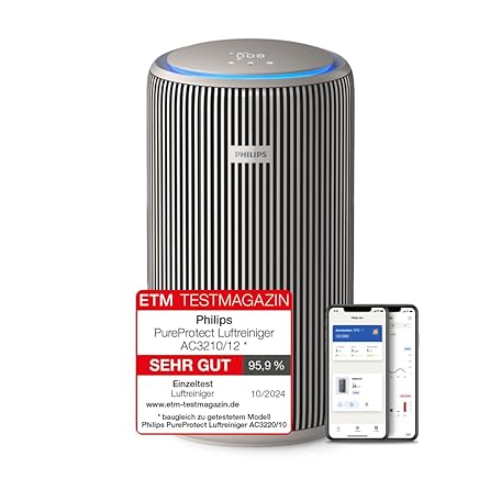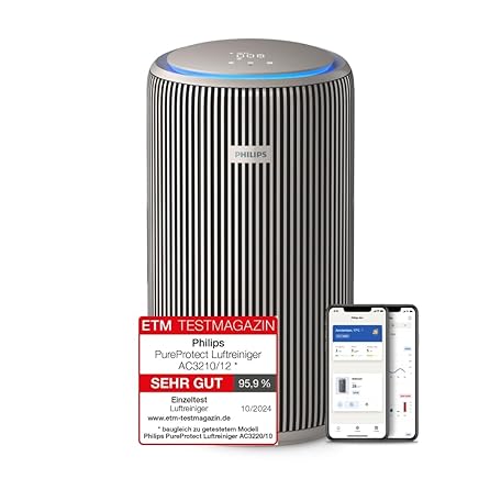 Sản phẩm Philips PureProtect 3200 Series: Intelligent Air Purifier, HEPA and Activated Carbon Filter, CADR 500 m³/h for 130 m², Ultra Quiet and Energy Efficient, Captures 99.97% Allergens (AC3210/12) đang được bán với giá ưu đãi là $340.5814 tại nước Đức.