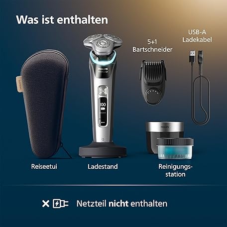 Sản phẩm Philips Razor i9000 Prestige Wet and Dry Razor for Men with Integrated Trimmer, Grey/Silver, Pressure Sensor, Cleaning Station, 5+1 Beard Styler, Charging Station and Travel Case, Model XP9204/33 đang được bán với giá ưu đãi là $419.0396 tại nước Đức.