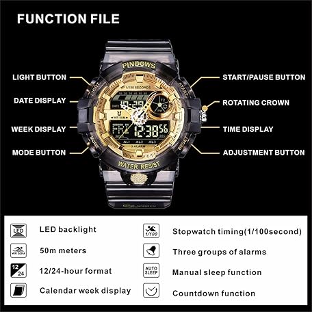 Thương hiệu PINDOWS là cái tên nổi tiếng được rất nhiều khách hàng trên thế giới chọn lựa. Với kiểu dáng đẹp mắt, sang trọng, sản phẩm PINDOWS Men's Digital Watch for Men Watch Digital Watch Men's Sports Watch Digital Analogue Display Watches with Waterproof Light 3 Alarm Groups Countdown Stopwatch Multifunctional Wristwatches là sự lựa chọn hoàn hảo nếu bạn đang tìm mua một món cho riêng mình.