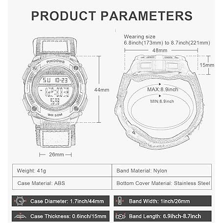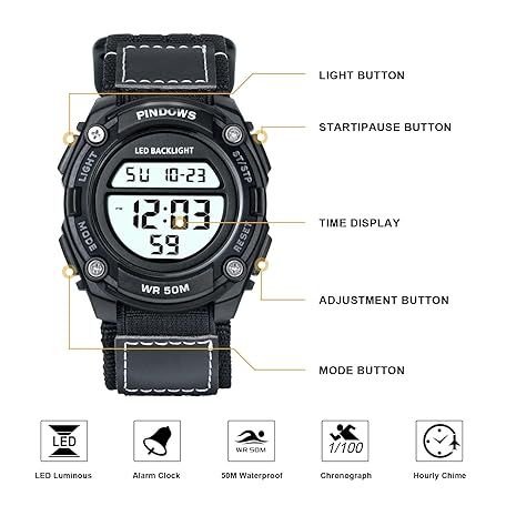 Sản phẩm PINDOWS Waterproof Digital Sports Watches for Men Chronograph Nylon Strap Multifunctional Unisex Watch with LED Backlight Alarm Stopwatch Calendar đang được bán với giá ưu đãi là $12.5459 tại nước Đức.
