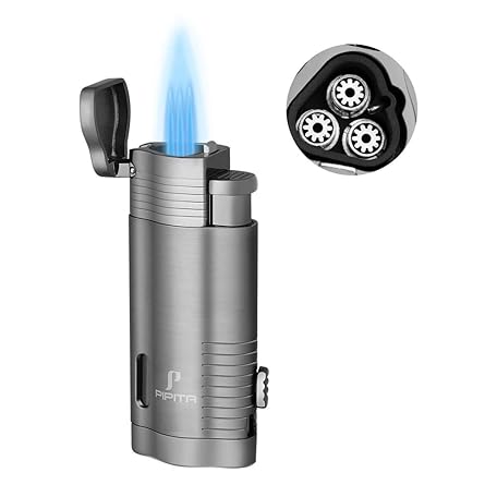 PIPITA Sturmfeuerzeug mit Jetflamme, Feuerzeug für Taschenlampe, 3 Jet-Stabfeuerzeug Nachfüllbar Gas Feuerzeug aus Zinklegierung mit Locher (Butan Nicht im)