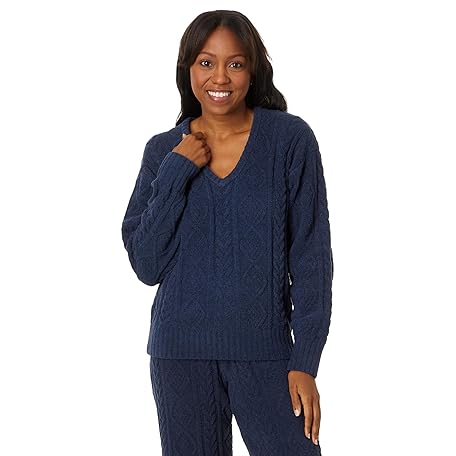 Thông tin sản phẩm P.J. Salvage Damen Cable Crew Lounge Long Sleeve Pyjamaoberteil, Mitternacht/Ausflug, einfarbig (Midnight//Getaway Solids), S