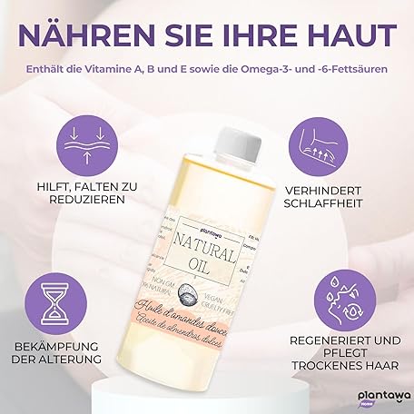 Sản phẩm PLANTAWA - Sweet Almond Oil 500ml | 100% Natural Body Oil Ideal for Pregnancy and Stretch Marks. Massage Oil with Maximum Absorption, Moisturizes Skin and Hair and Delivers Vitamin E đang được bán với giá ưu đãi là $11.5104 tại nước Đức.