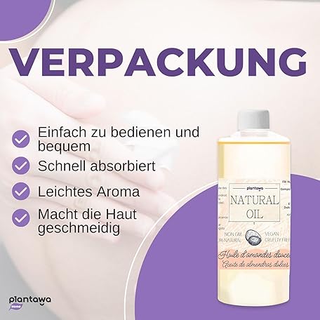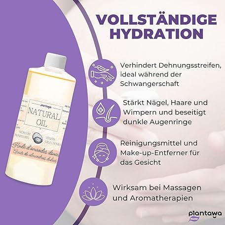Thông tin sản phẩm PLANTAWA - Sweet Almond Oil 500ml | 100% Natural Body Oil Ideal for Pregnancy and Stretch Marks. Massage Oil with Maximum Absorption, Moisturizes Skin and Hair and Delivers Vitamin E