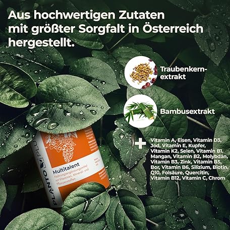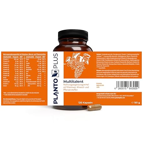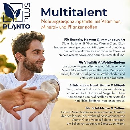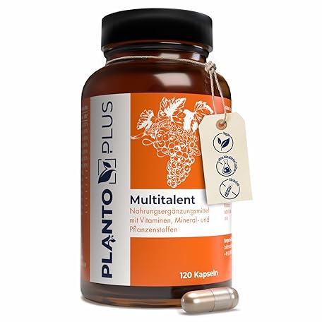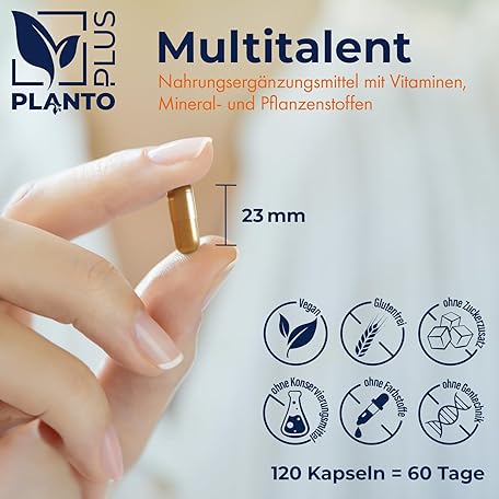 Thông tin sản phẩm PLANTOPLUS® Multitalent Multivitamin - 120 Capsules - with Vitamin C, Coenzyme Q10, Quercetin, Iron, Selenium, Iodine, Zinc - All-rounder High Dose - Vegan, Gluten Free, Lactose Free, No Added Sugar
