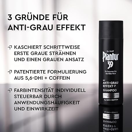 Thông tin sản phẩm Plantur 39 Anti-Grau Effekt Shampoo, 1 x 200 ml - Kaschiert schrittweise graues Haar - für braunes bis dunkles Haar - langanhaltendes Ergebnis ohne Färben