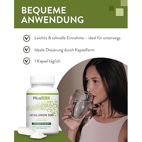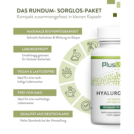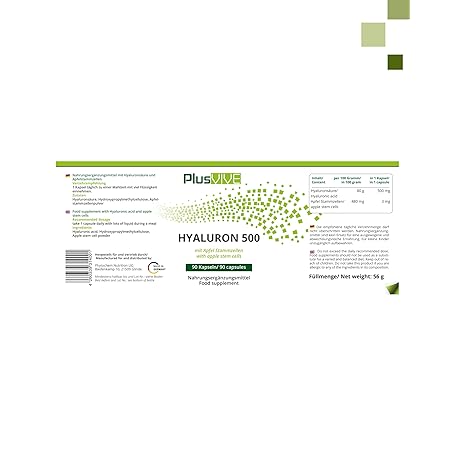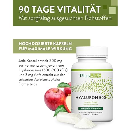 Sản phẩm PlusVive - High dose hyaluronic acid | 90 capsules | 500 mg hyaluronic acid per capsule - plus 3 mg apple stem cells | laboratory tested and vegan đang được bán với giá ưu đãi là $22.9663 tại nước Đức.
