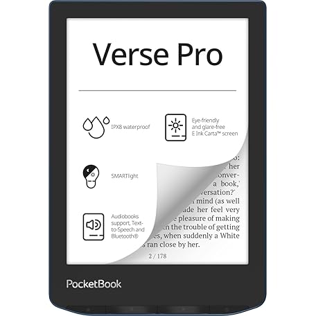 Sản phẩm PocketBook Verse Pro E-Reader, 6'' E-Ink HD Touch, 16 GB, Bluetooth, Waterproof, Blue - DE/at/CH Version đang được bán với giá ưu đãi là $202.1296 tại nước Đức.