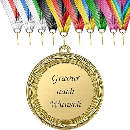 Pokal-Fabrik.de Medal with Engraving of Your Choice of Text in Gold - Personalised Order Made of High-Quality Metal - Gold Medal & Ribbon Colour of Your Choice - Medals for Children and Adults, Clubs